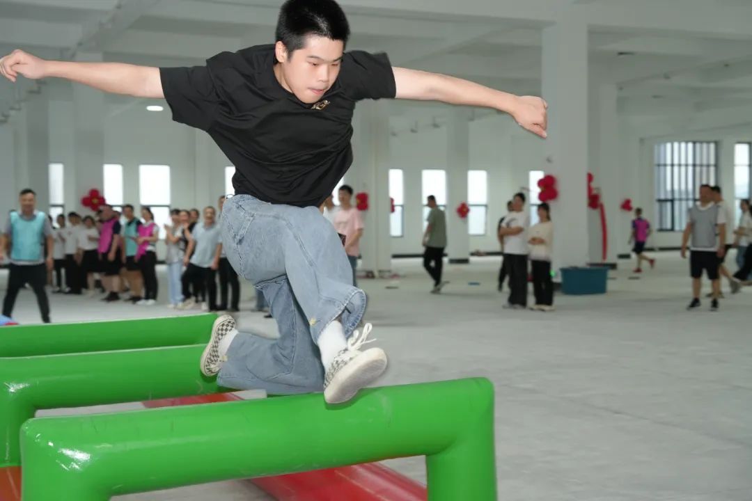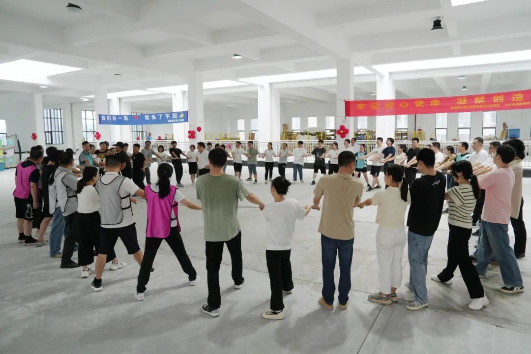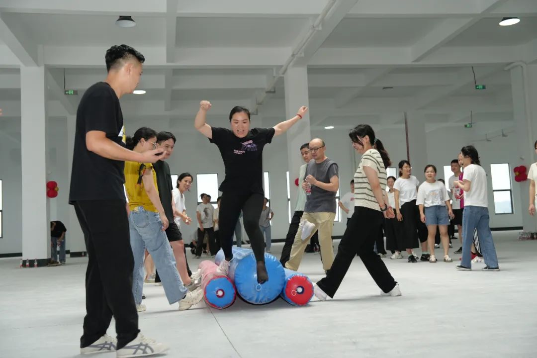 在教練帶領(lǐng)大家進(jìn)行充分熱身之后,團(tuán)建活動正式拉開序幕,6支團(tuán)隊(duì)分別起了各具特色的隊(duì)名與振奮人心的口號,在“超級障礙賽”、“飛盤嘉年華”與“蒙眼博弈”等前三個(gè)競技游戲中,隊(duì)友奮力拼搏、相互團(tuán)結(jié)協(xié)作,用耐心和智慧出色完成每個(gè)項(xiàng)目,對手之前本著“友誼第一、比賽第二”的體育精神,相互尊重,在充滿挑戰(zhàn)性和趣味性的活動中賽出了風(fēng)格,賽出了水平。在最后一個(gè)“動力圈”游戲項(xiàng)目中所有人團(tuán)結(jié)協(xié)作、配合默契,勇于挑戰(zhàn)的精神風(fēng)貌充分展現(xiàn)了湘能楚天大家庭團(tuán)結(jié)向上、銳意進(jìn)取的昂揚(yáng)斗志。整個(gè)活動現(xiàn)場氣氛活躍而又熱烈,每個(gè)人在揮灑汗水的同時(shí),也享受了趣味運(yùn)動帶來的樂趣,提升團(tuán)隊(duì)的凝聚力和集體向心力的同時(shí)營造了溫馨、愉悅的企業(yè)文化氛圍,進(jìn)而增強(qiáng)了員工對企業(yè)的歸屬感。我們在一起,就會了不起。<<<向左滑動欣賞更多精彩瞬間...