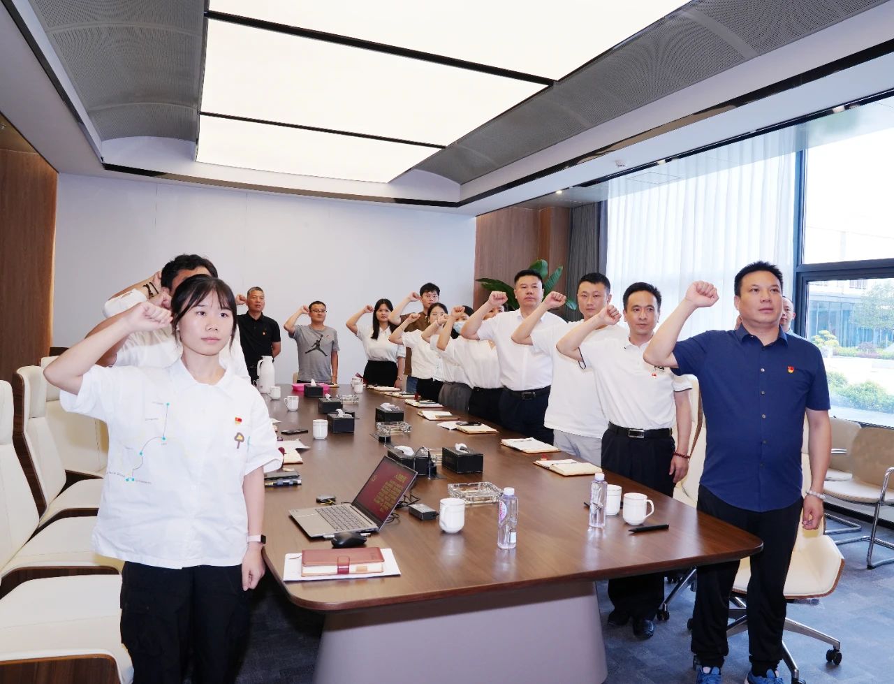 7月3日下午,未出差的集團(tuán)黨支部黨員與入黨積極分子共二十余名在三樓會議室舉行了紀(jì)念建黨103周年主題黨日活動。黨員大會由支部副書記王麗杰主持,會上,支部書記陳偉其為大家上了一堂無比生動,富有思想性、理論性,又非常接地氣、振奮人心的黨課,使大家產(chǎn)生了強(qiáng)烈的共鳴與思考。之后相繼完成了黨紀(jì)視頻學(xué)習(xí)、討論朱雷同志轉(zhuǎn)為正式黨員以及接收陸振宇同志為預(yù)備黨員等會議議程。最后,黨支部書記、董事長陳偉其領(lǐng)誓,新黨員進(jìn)行了入黨宣誓,老黨員重溫了入黨誓詞。